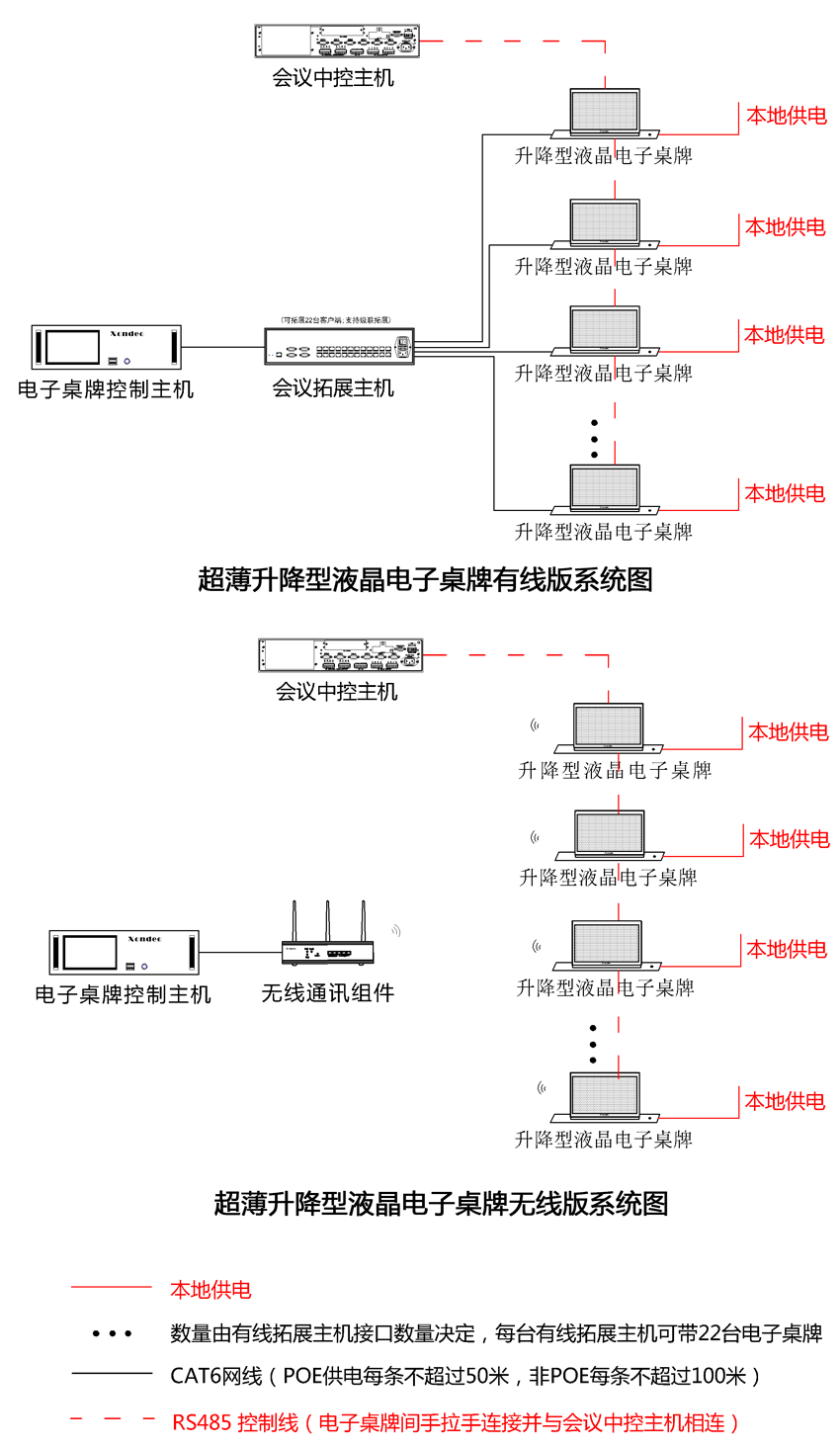 有(yǒu)線款桌面開(kāi)孔,終端通過網線直連到(dào)擴展主機;無線款桌面任意擺放(fàng)